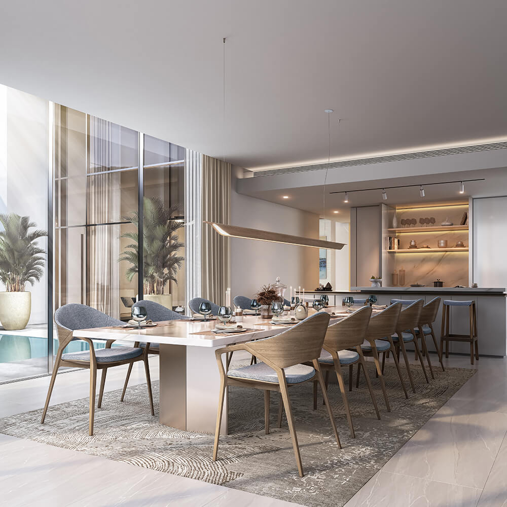 Luxurious sea-facing villas provide exclusive access to the boardwalk and picturesque views of the lagoon waterfront, while mansions with double-height foyers offer a personal paradise with every sunrise and sunset painting the skies with hues of tranquility. Sobha Siniya Island is a haven for those with a discerning taste for serenity and adventure, where lush mangroves merge with pristine beaches, creating a sanctuary where wildlife flourishes and water activities abound.