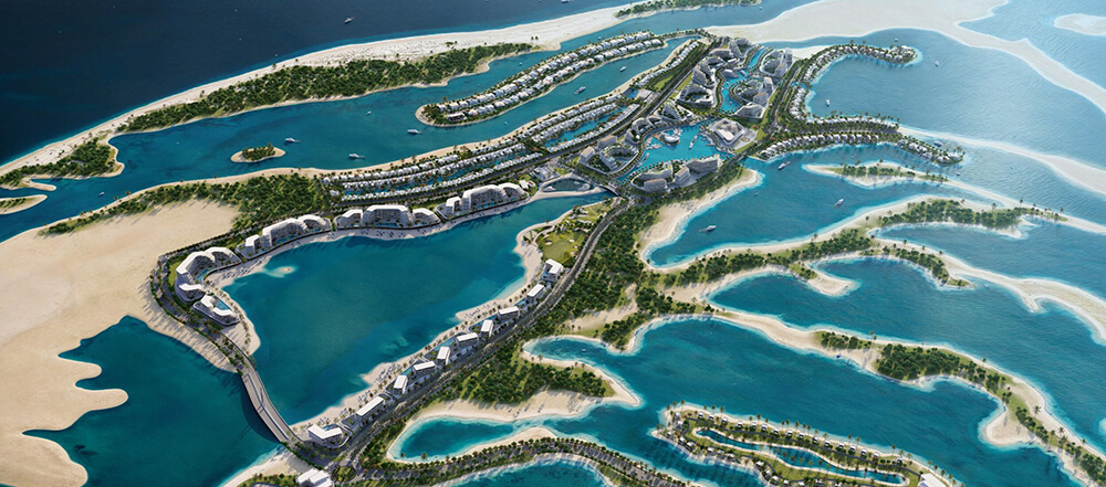 This community is fully self-sufficient, allowing residents the choice to remain on the island. Amenities include several lagoons, beaches, multiple beach clubs, a yacht club and marina, sports facilities, cafes, restaurants, and a golf course.